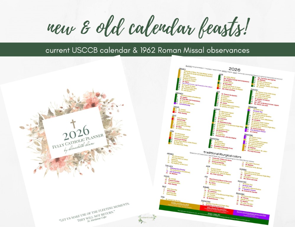 “My favorite planner! I am a homeschooling momma of 6 children and this planner is perfect. Plenty of space for me to keep track of our appointments, what we’ve done in school, meal plan, books I need to get from library… everything! I love all the work that has been put into the planner making it easy for me to incorporate saints feast days, mass readings, papal intentions, etc. this planner does it all”