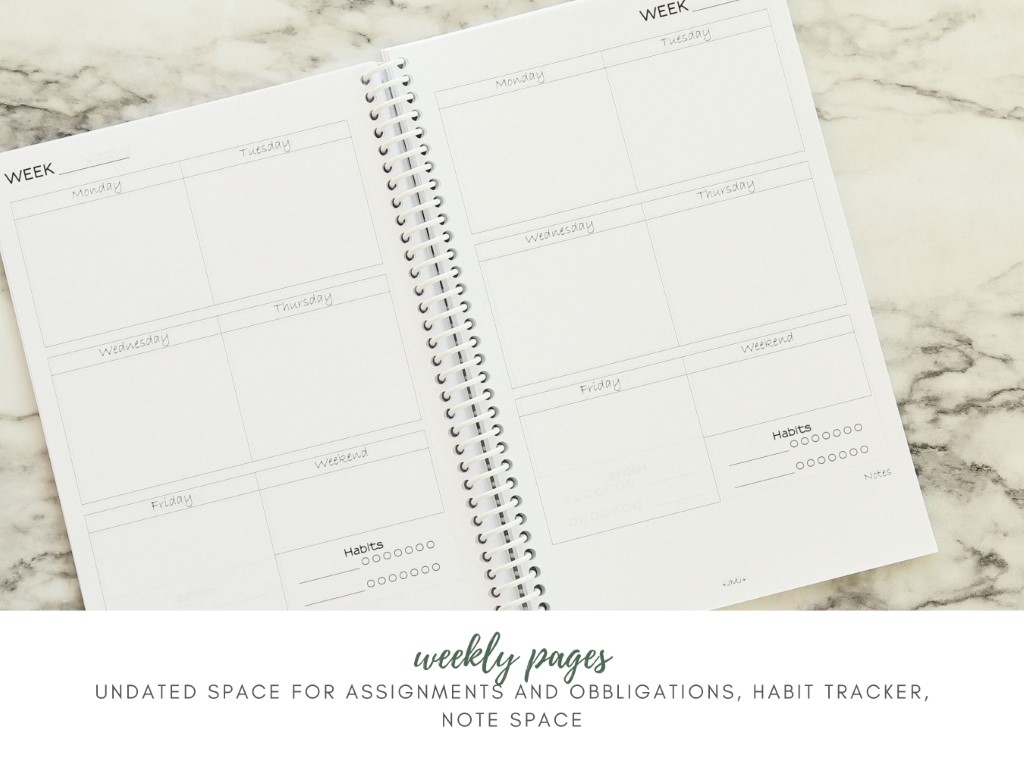 Flexible yet structured and filled with liturgical life this planner will help any student set goals, develop habits, track daily work and commitments, and excel in their academic endeavors.